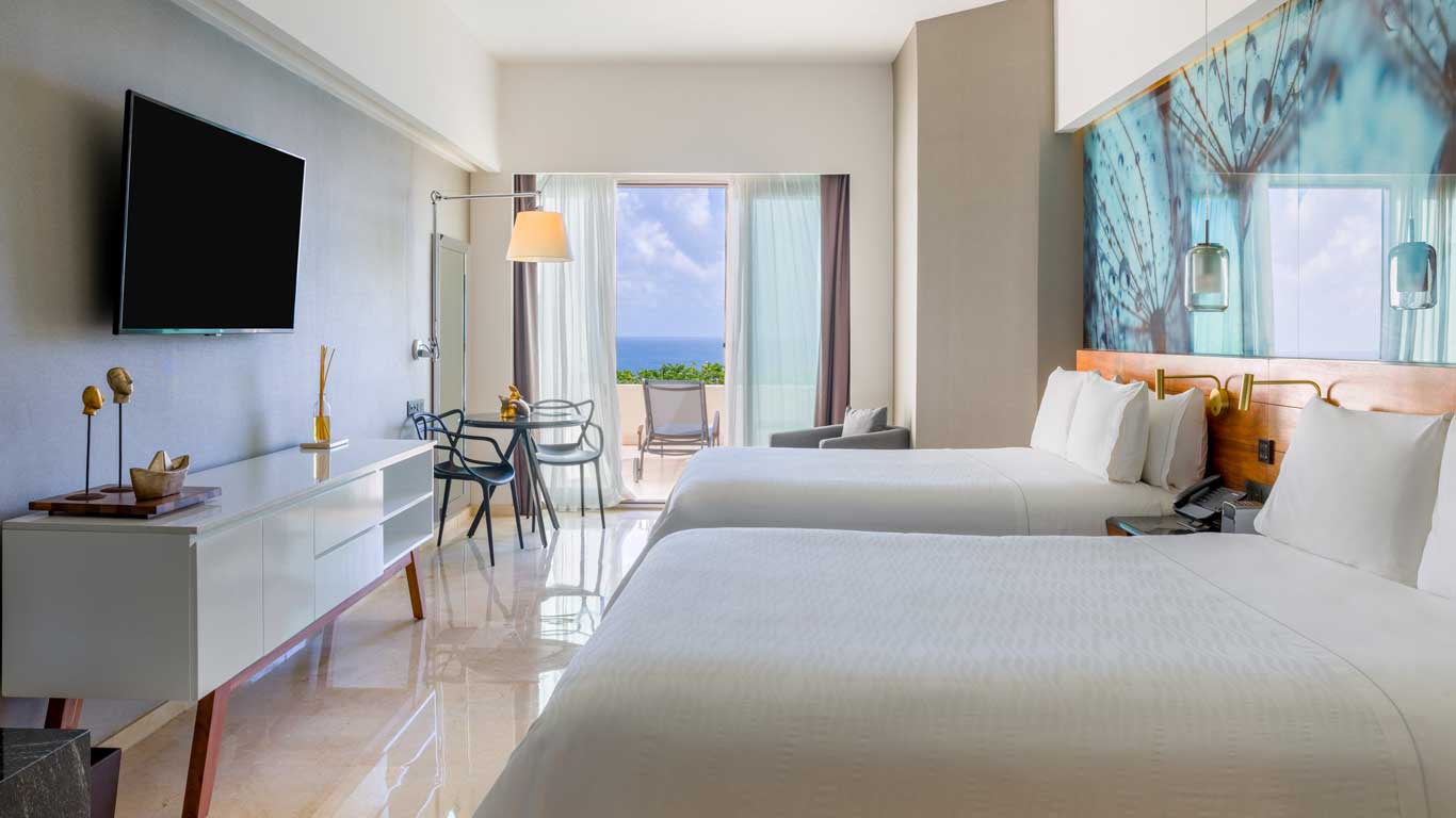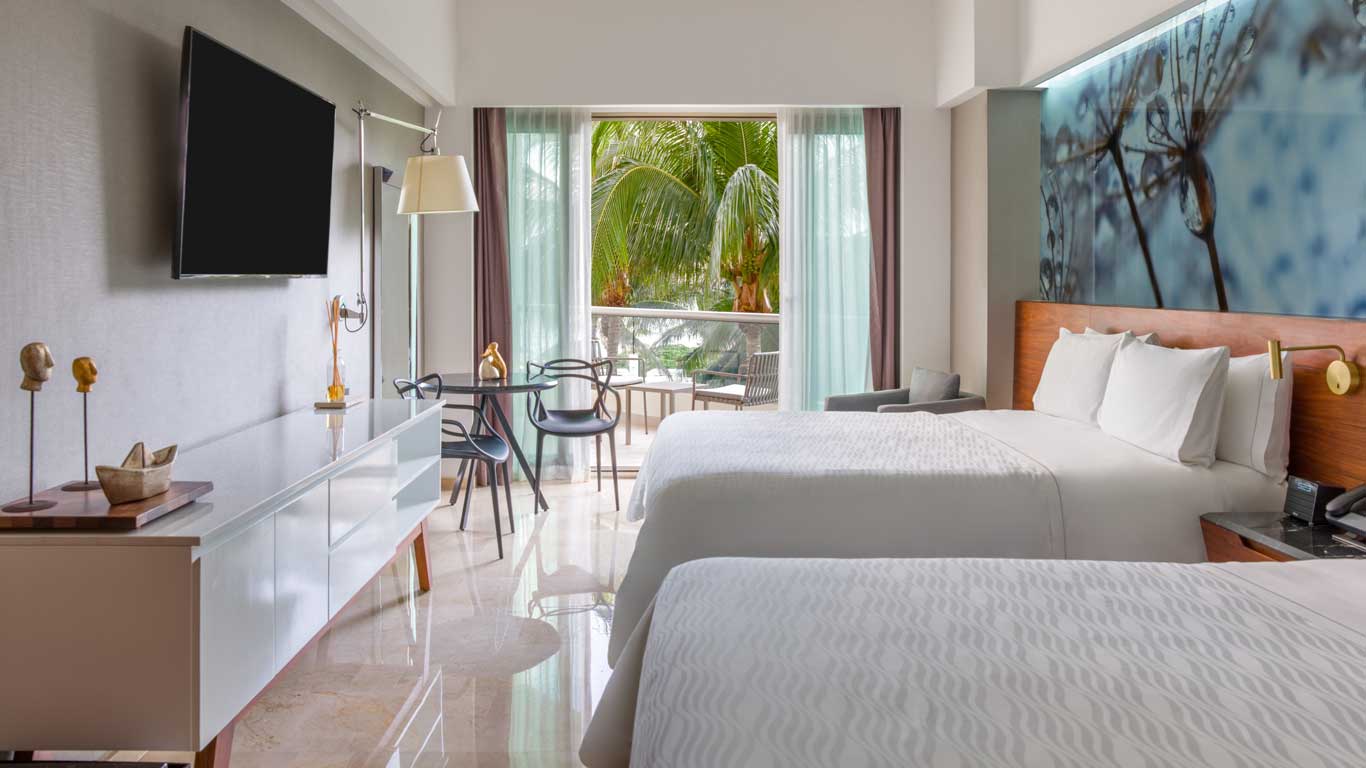 The 371 recently refurbished suites and rooms at Live Aqua Beach Resort Cancun All Inclusive Adults Only boast fine furniture and decorative accents in ochre colors, offers one king size or two double beds, balcony or terrace, in addition to centralizing connections for all types of electronic gadgets, LED screens with satellite TV and free Wi-Fi access. Bathrooms now offer the option to completely open the wooden blinds and vanity mirrors in order to connect with the bedroom and appreciate the ocean views.